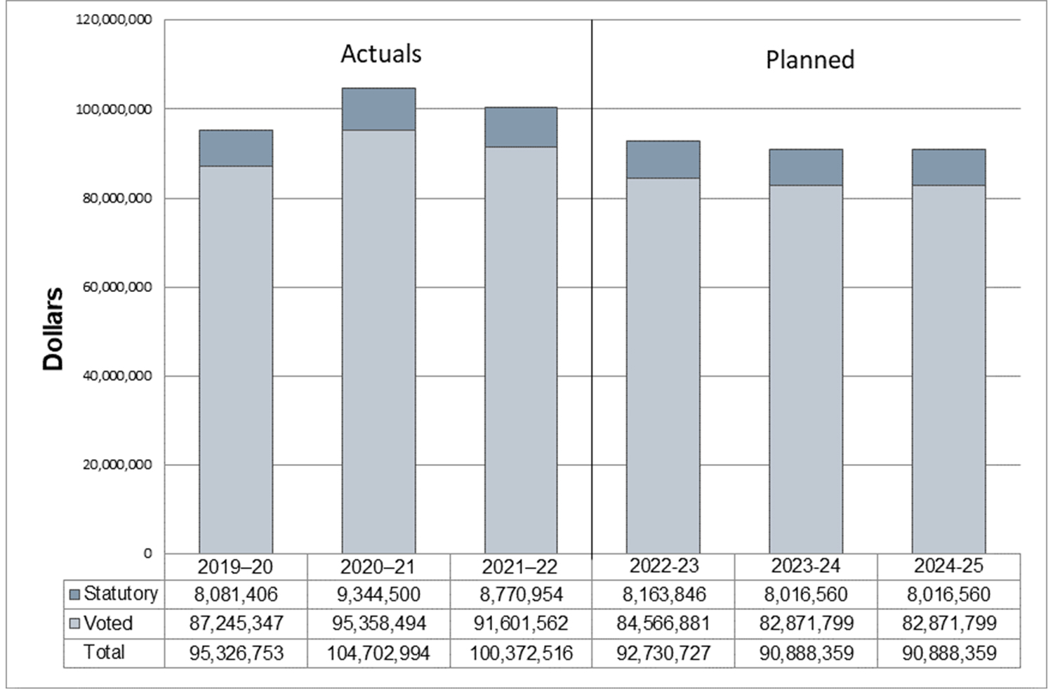The following table shows budgetary spending for 2021–22, as well as actual spending for that year, for its core responsibility: administrative services for the federal Courts.